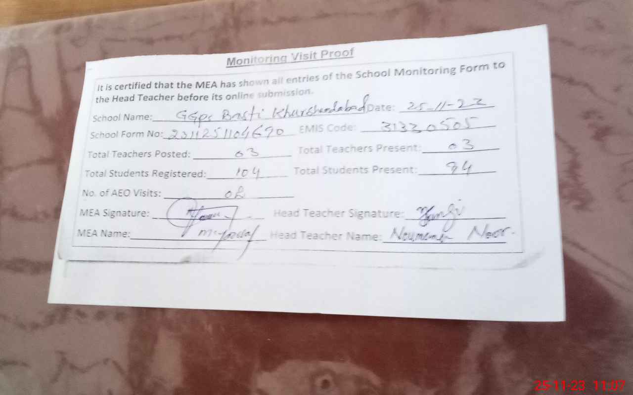 | EMIS Code: 31330505 | Name of School: GGPS BASTI KHURSHEED ABAD | |||