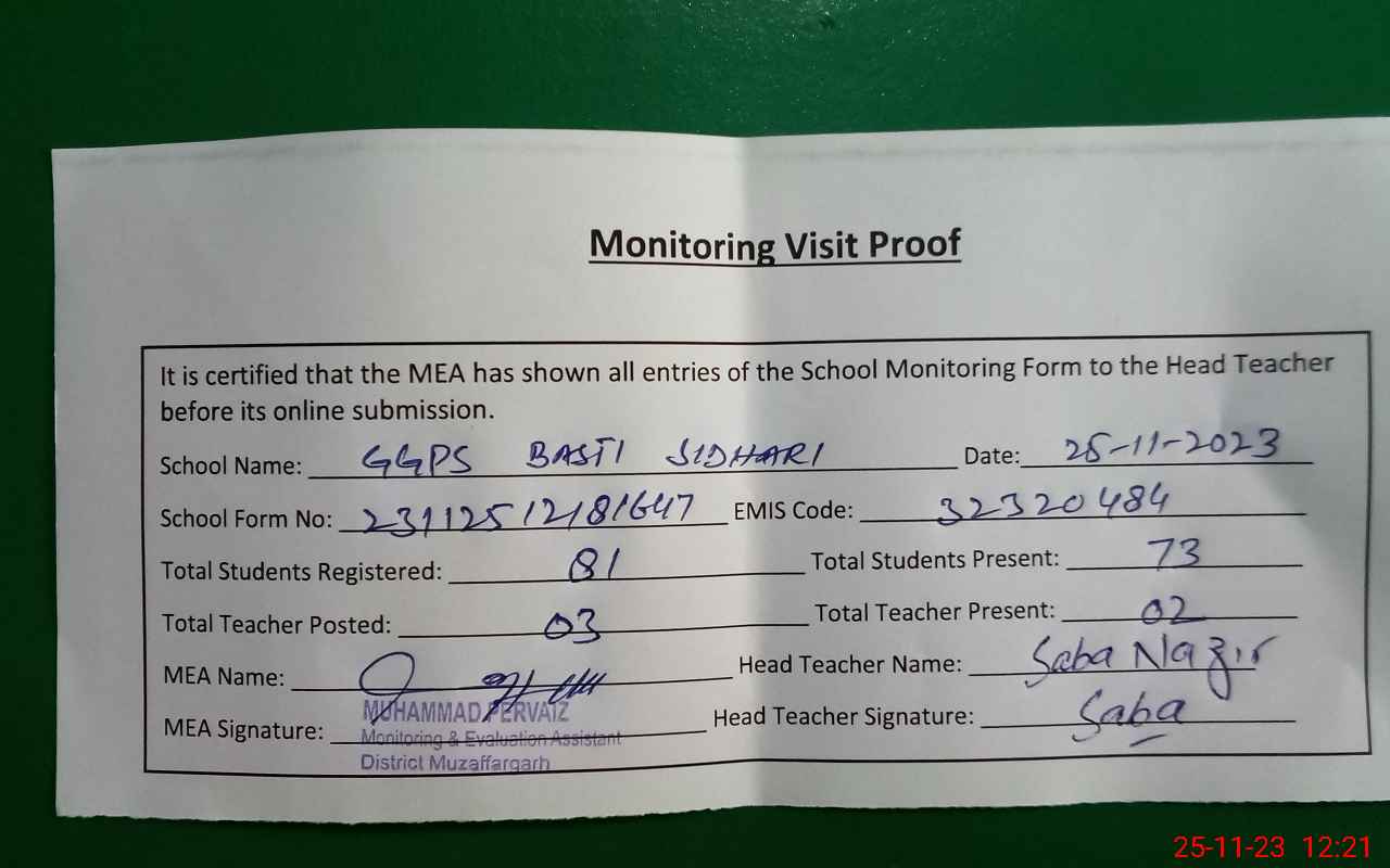 | EMIS Code: 32320484 | Name of School: GGPS BASTI SADHARI | |||