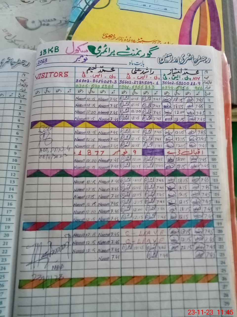 | CNIC | Full Name | Designation | R/C | Absence During Last Calender Month |