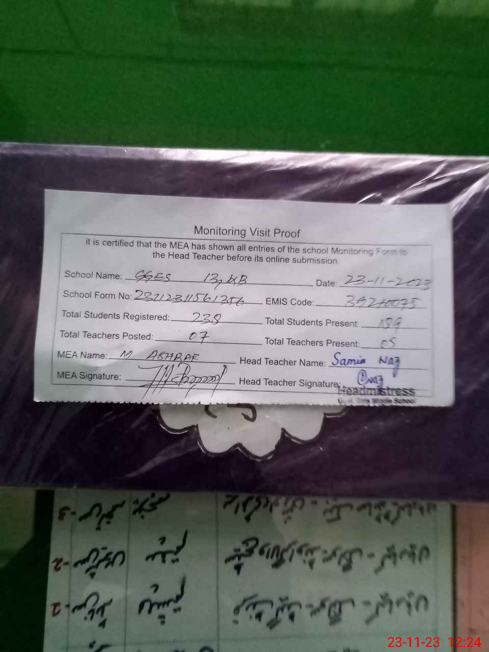 | EMIS Code: 39210075 | Name of School: GGES 13 KB | |||