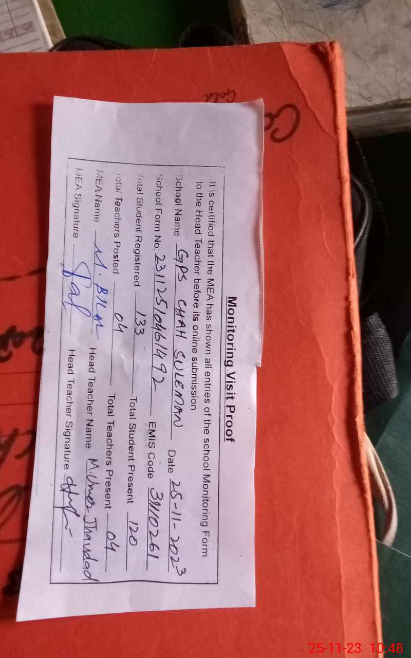 | EMIS Code: 31110261 | Name of School: GPS CHAH SULIMAN | |||