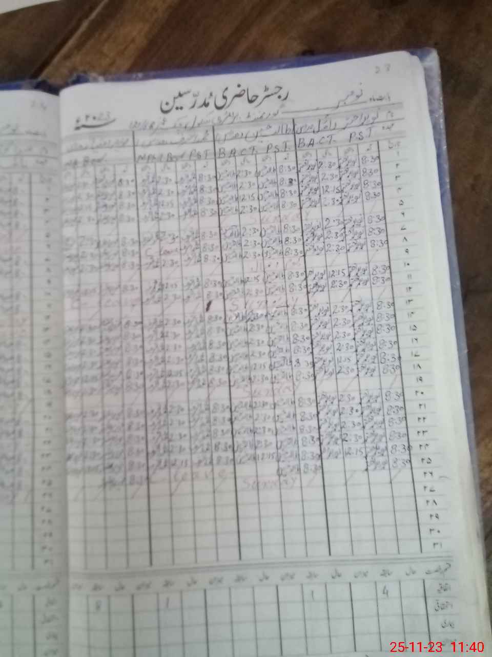 | CNIC | Full Name | Designation | R/C | Absence During Last Calender Month |
