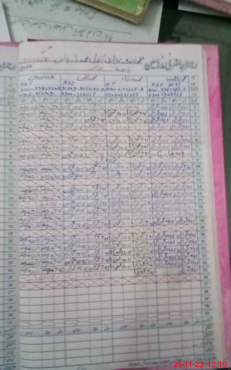 | CNIC | Full Name | Designation | R/C | Absence During Last Calender Month |