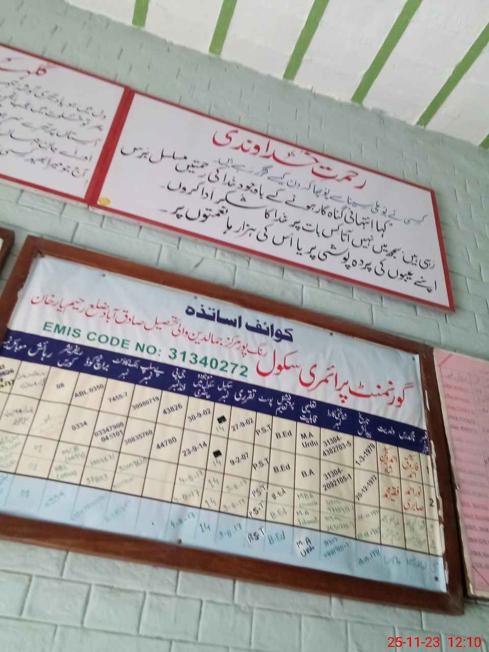 | District: RAHIMYAR KHAN | Tehsil: SADIQABAD | Markaz: JAMAL DIN WALI - MALE | Level: Primary | |