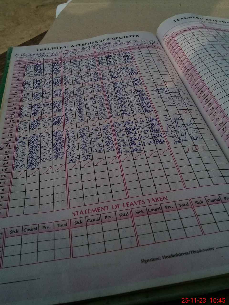 | Name: AR**** AL**** Designation: (School Headmaster's/Headmistress's) PST Phone/Cell Number: 03**** |