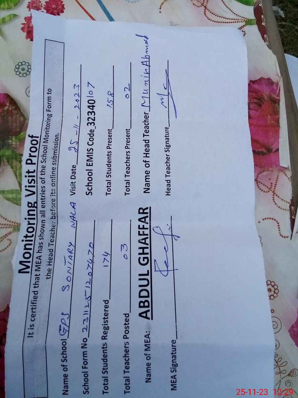 | EMIS Code: 32340107 | Name of School: GPS SONTRAY WALA | |||