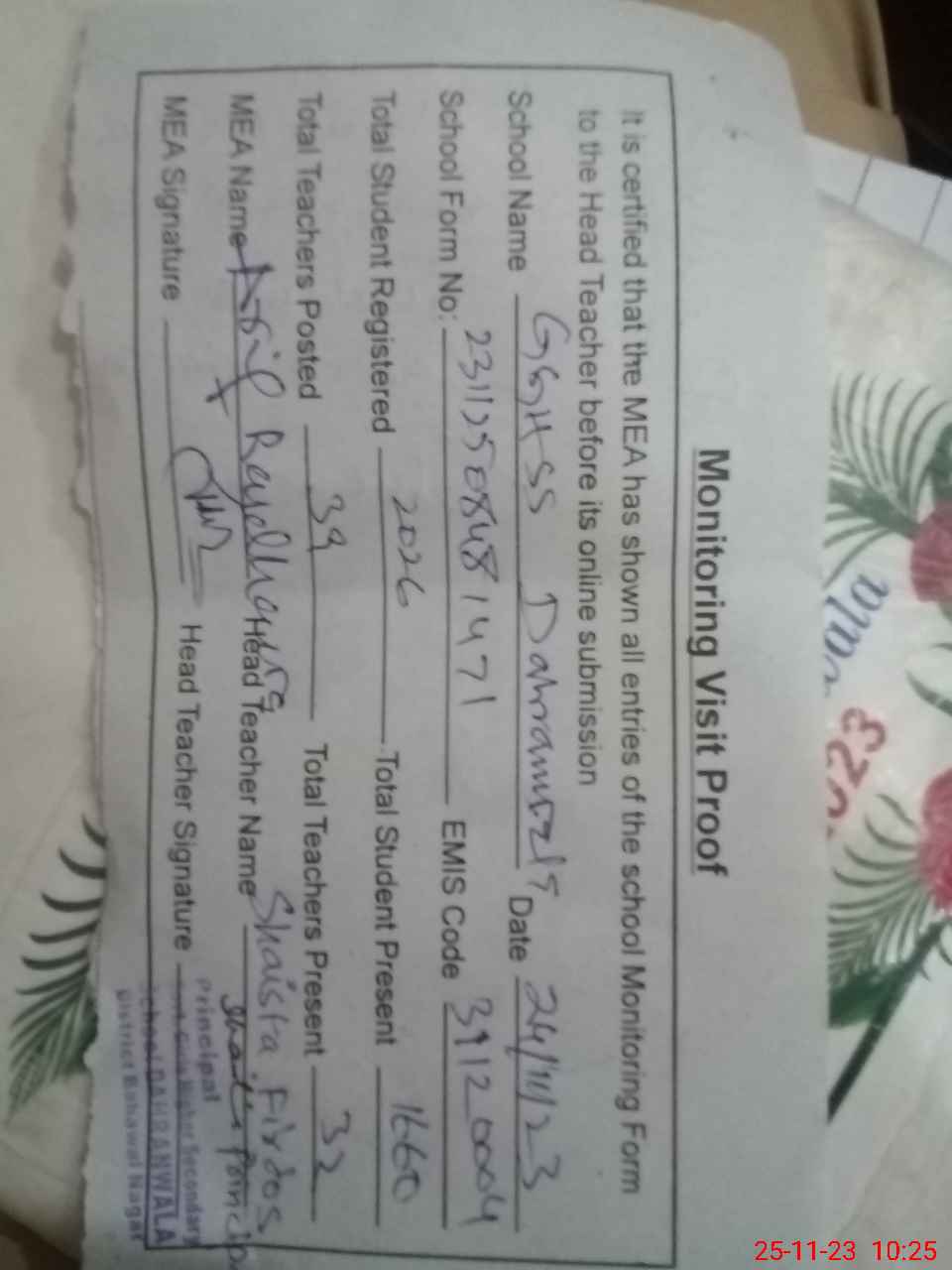 | EMIS Code: 31120004 | Name of School: GGHSS DAHRAN WALA | |||