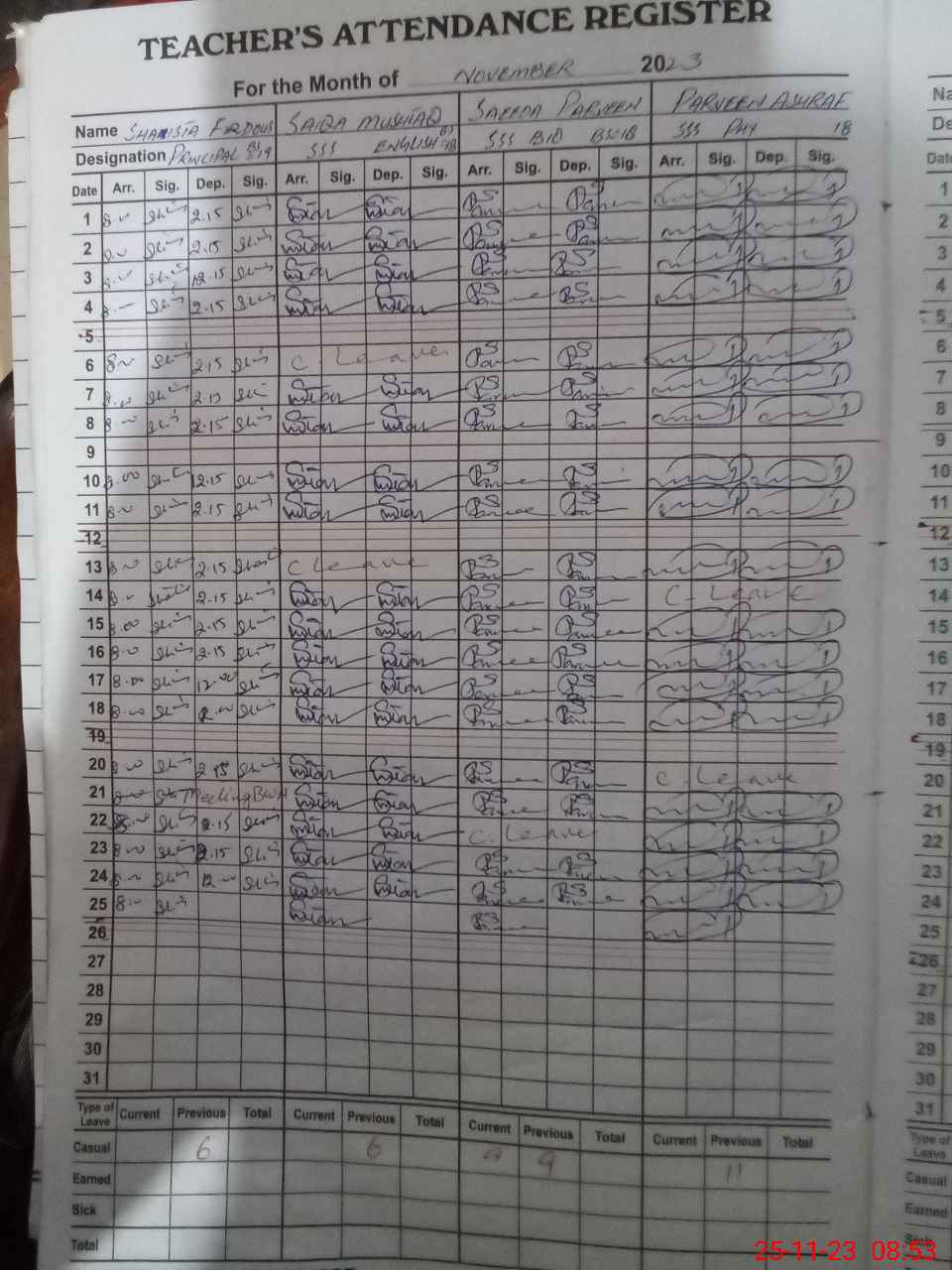 | 31**** | Sa**** Gh**** | 1 | 2 | 0 | 0 | 0 | 0 | 0 | 0 | 0 | 2 | Absent (Un-Authorized) | |
