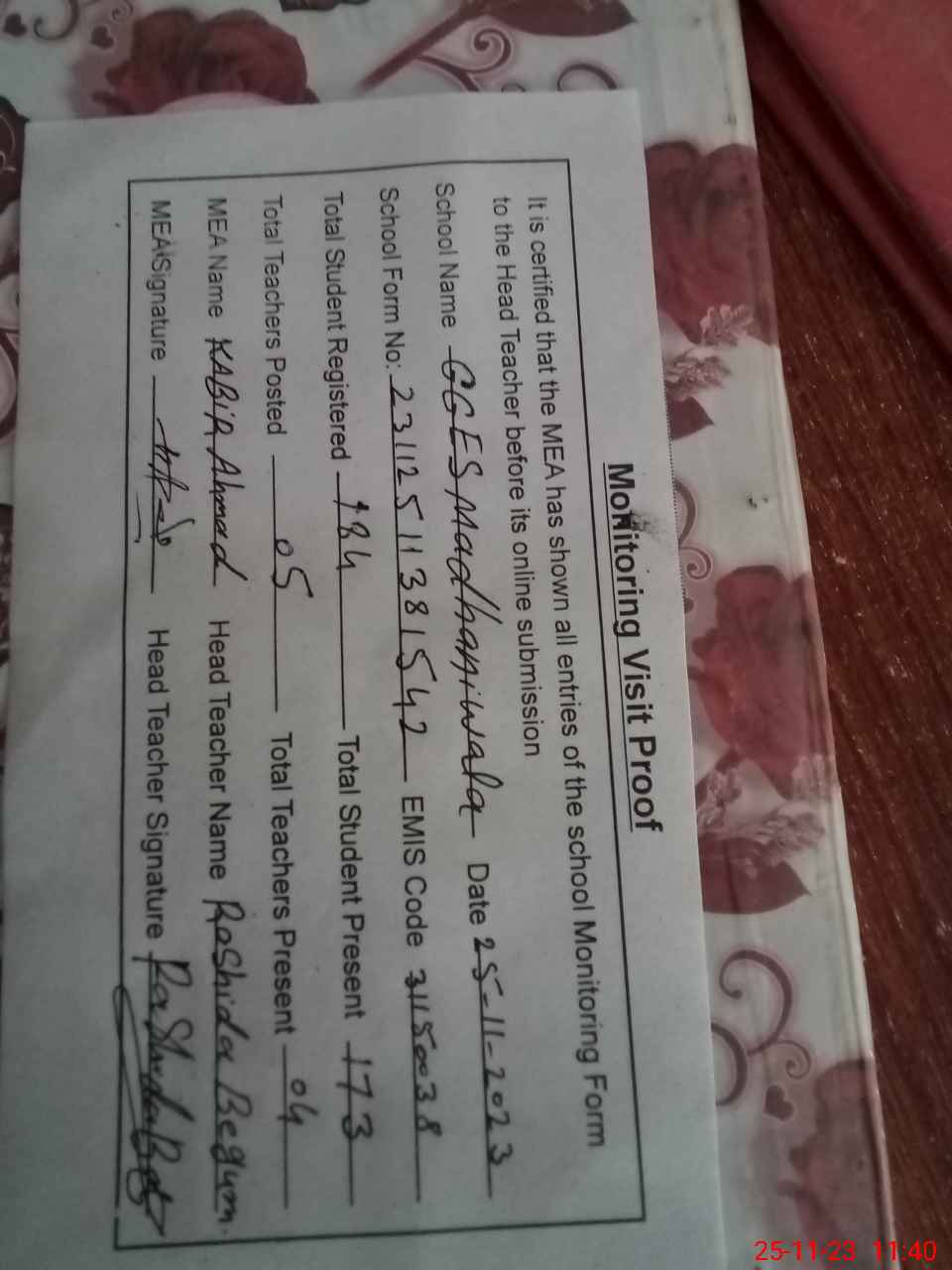 | EMIS Code: 31150038 | Name of School: GGES MADHAANI WALA | |||