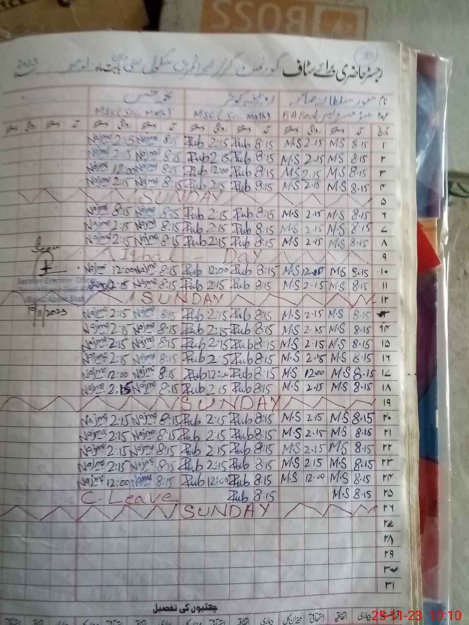 | CNIC | Full Name | Designation | R/C | Absence During Last Calender Month |