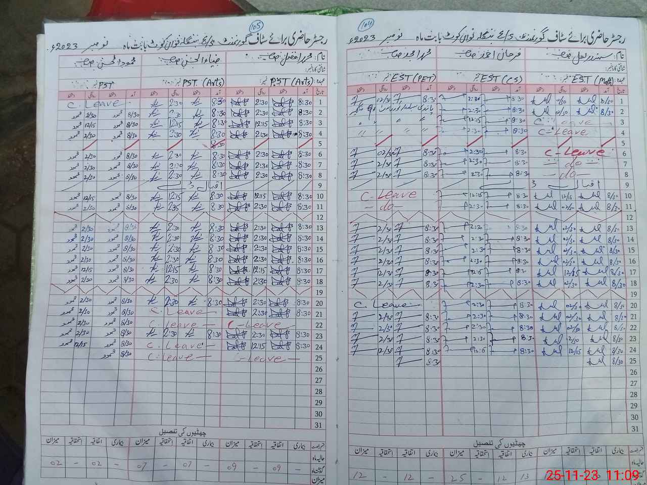 | CNIC | Full Name | Designation | R/C | Absence During Last Calender Month |