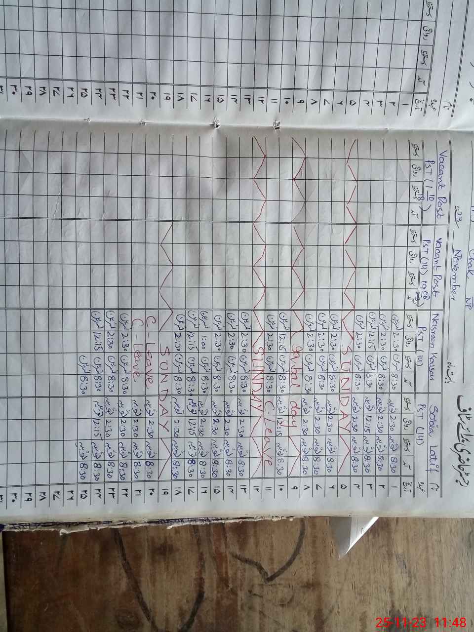 | CNIC | Full Name | Designation | R/C | Absence During Last Calender Month |