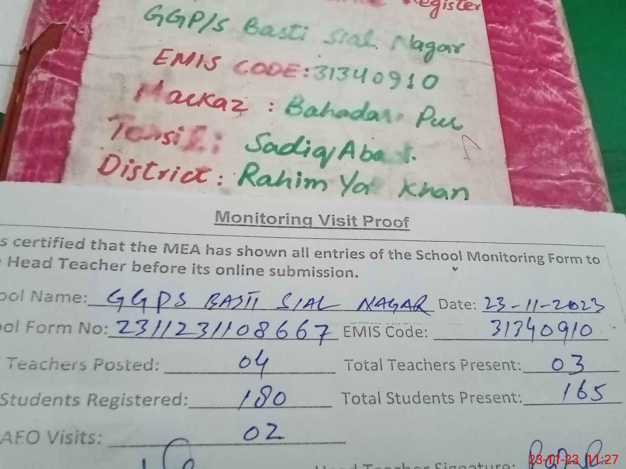 | EMIS Code: 31340910 | Name of School: GGPS BASTI SIAL NAGAR | |||