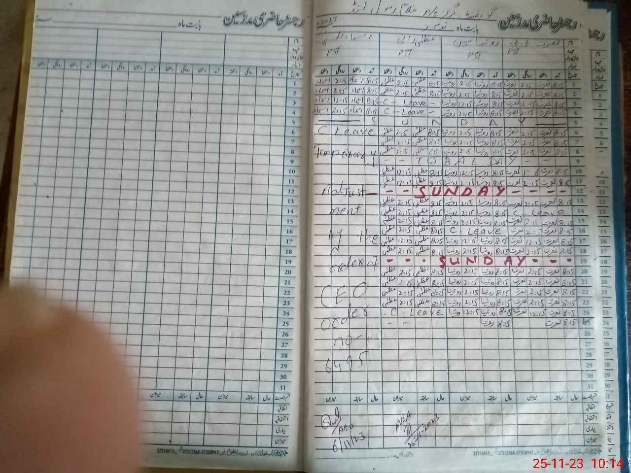 | CNIC | Full Name | Designation | R/C | Absence During Last Calender Month |