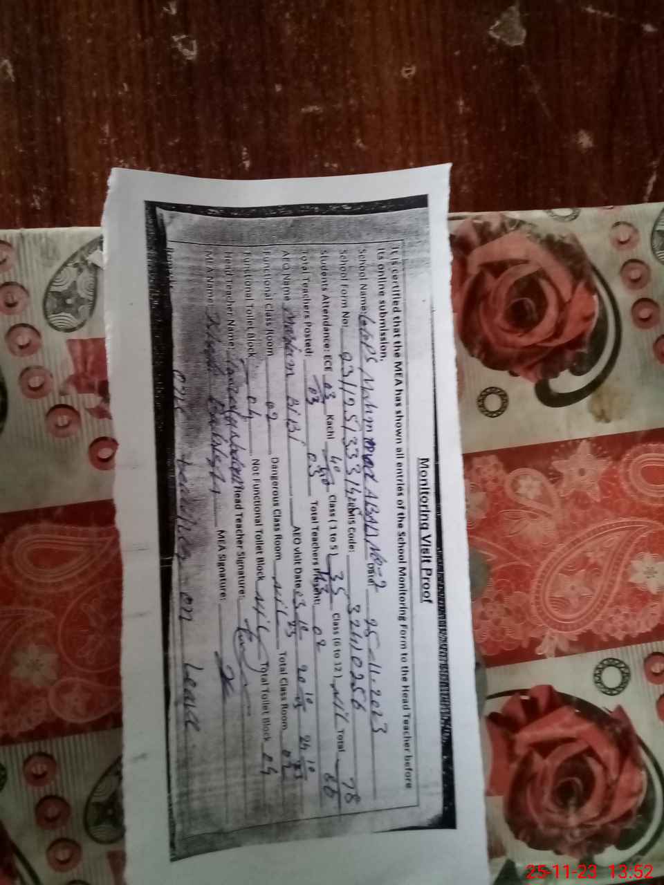 | Certified that this School was Inspected by the Undersigned MEA/DMO Today and the Information Stated Above is as Per Record. | |||||