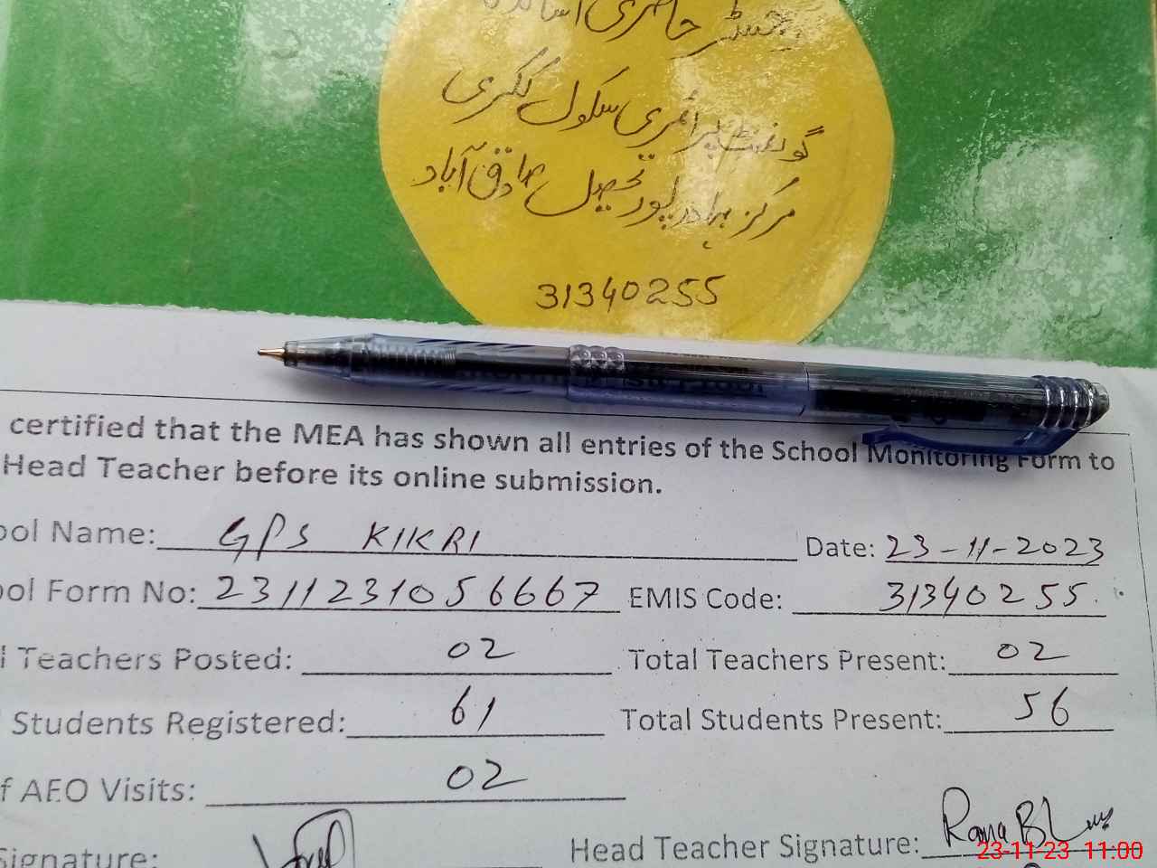 | Attendance Register | Head Teacher | MEA with School | Visit Proof |