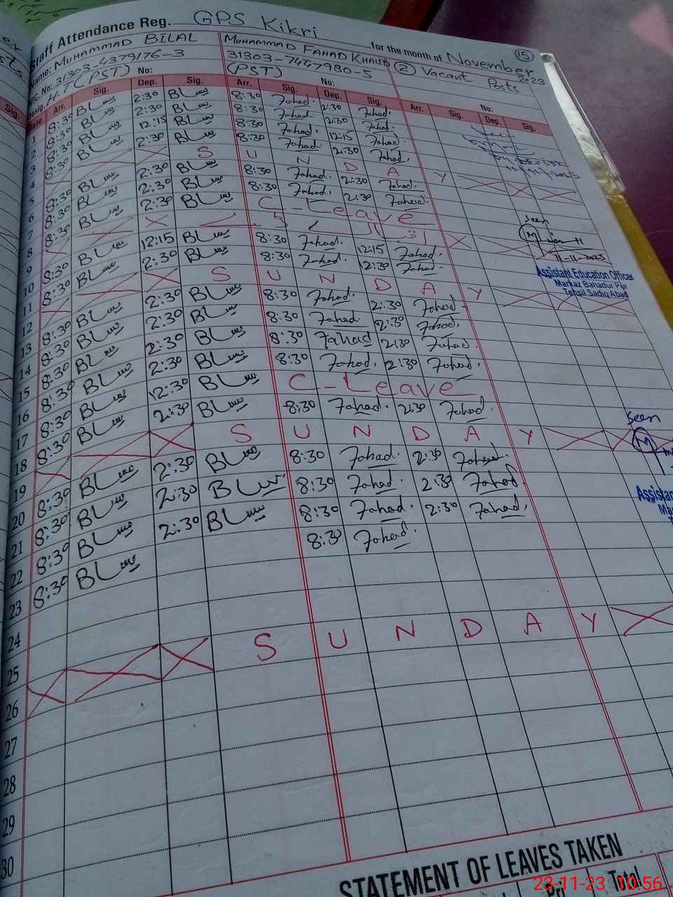 | CNIC | Full Name | Designation | R/C | Absence During Last Calender Month |