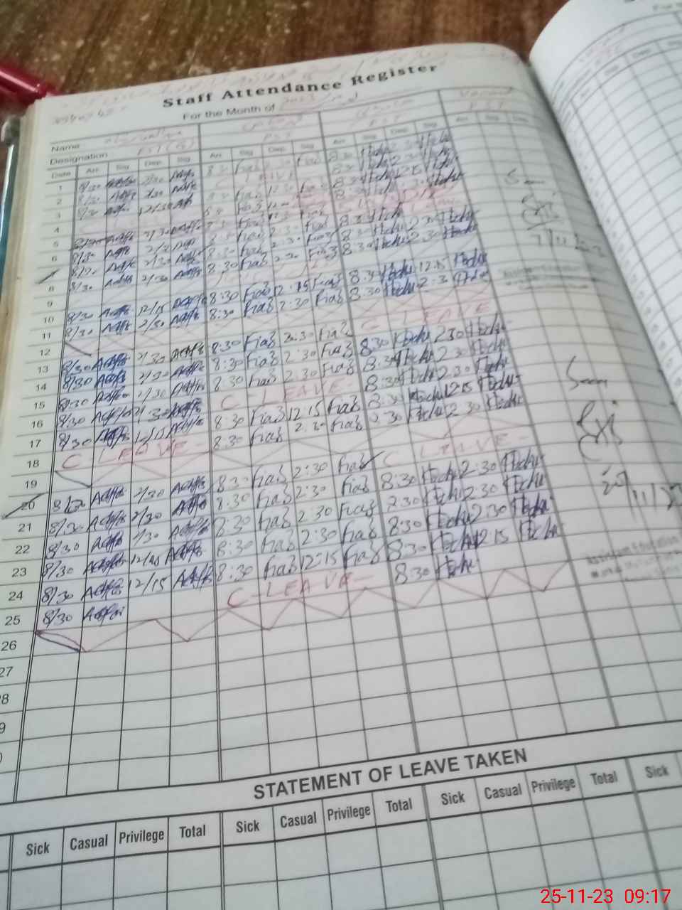 Leave Type | Remarks for Today (Leave,Training, Exam,Absent,Late, Other Duty) |
