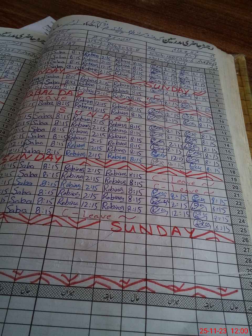 | 31**** | Ro**** Ka**** | PST | Regular | 1 | 0 | 0 | 0 | 0 | 0 | 0 | 0 | 1 | Casual |