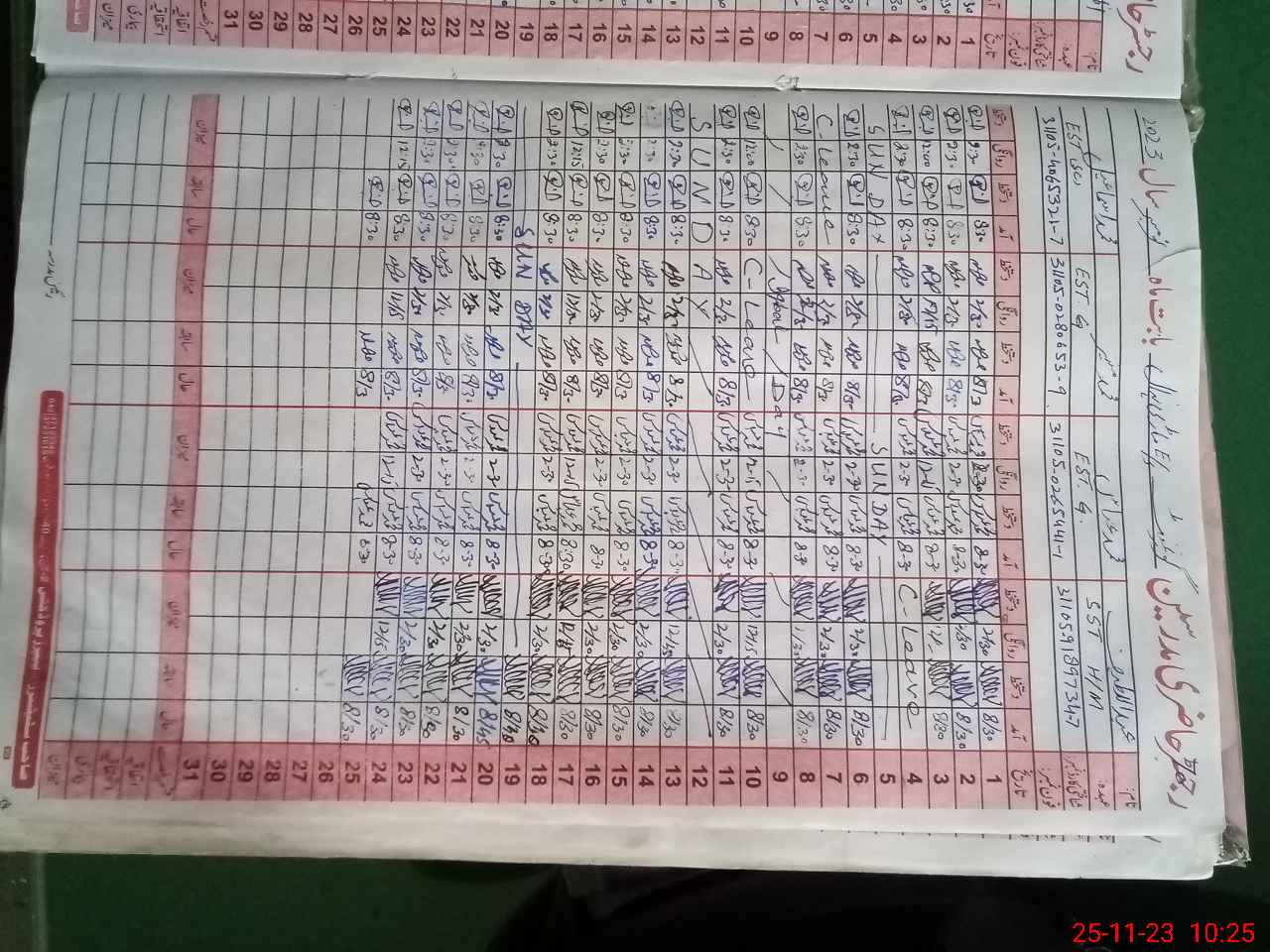 | CNIC | Full Name | Designation | R/C | Absence During Last Calender Month |