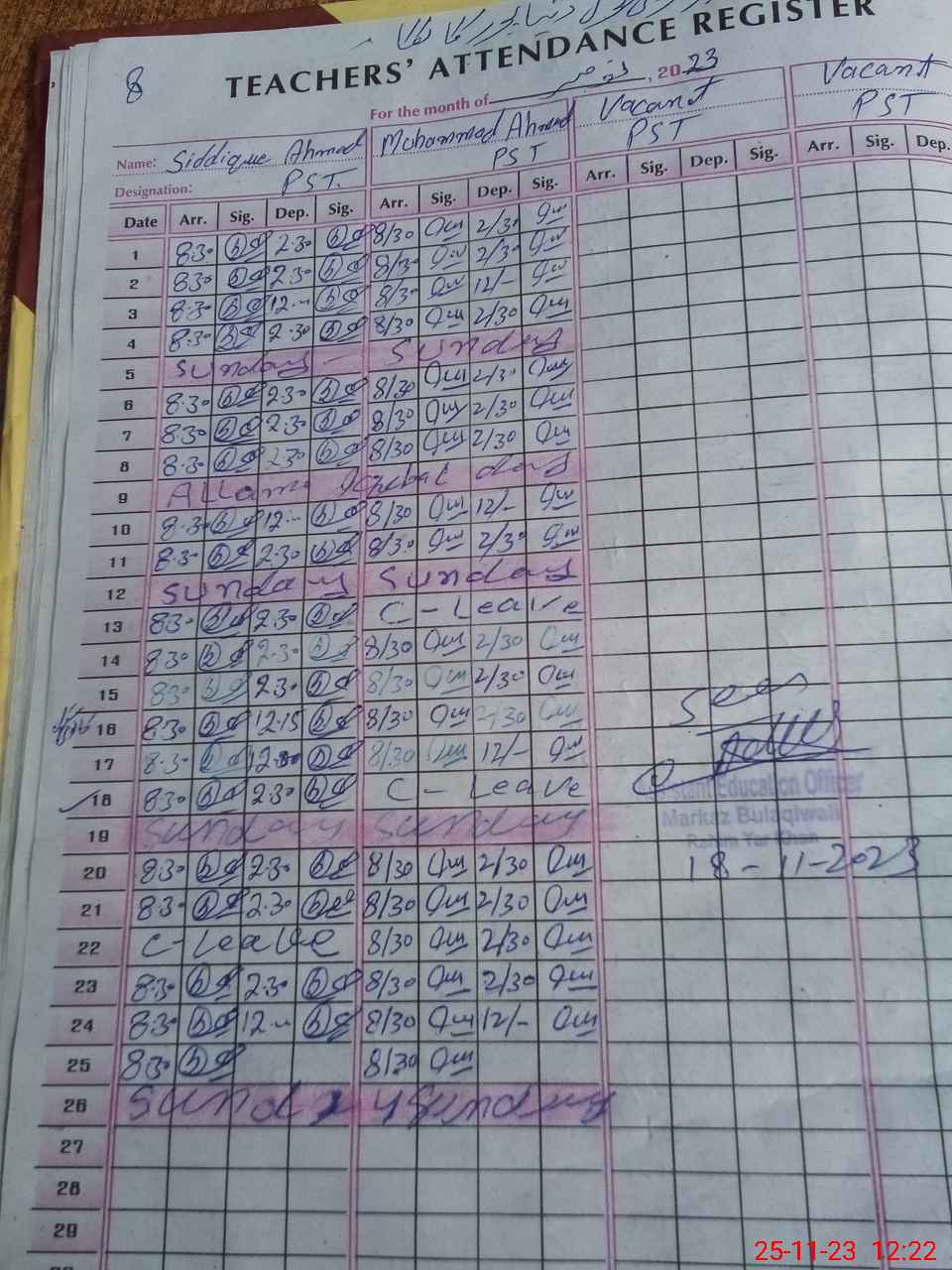 | Name: SI**** AH**** Designation: (School Headmaster's/Headmistress's) PST/PTC/JV Phone/Cell Number: 03**** |