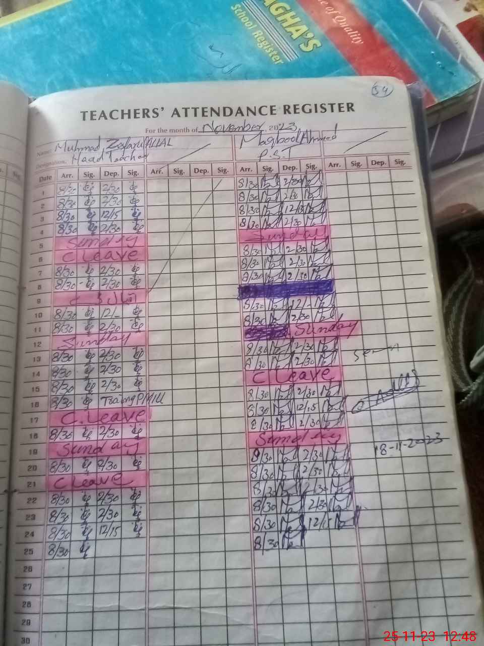 | Name: MU**** Za**** Ul**** Kh**** Designation: (School Headmaster's/Headmistress's) PST/ESE Phone/Cell Number: 03**** |