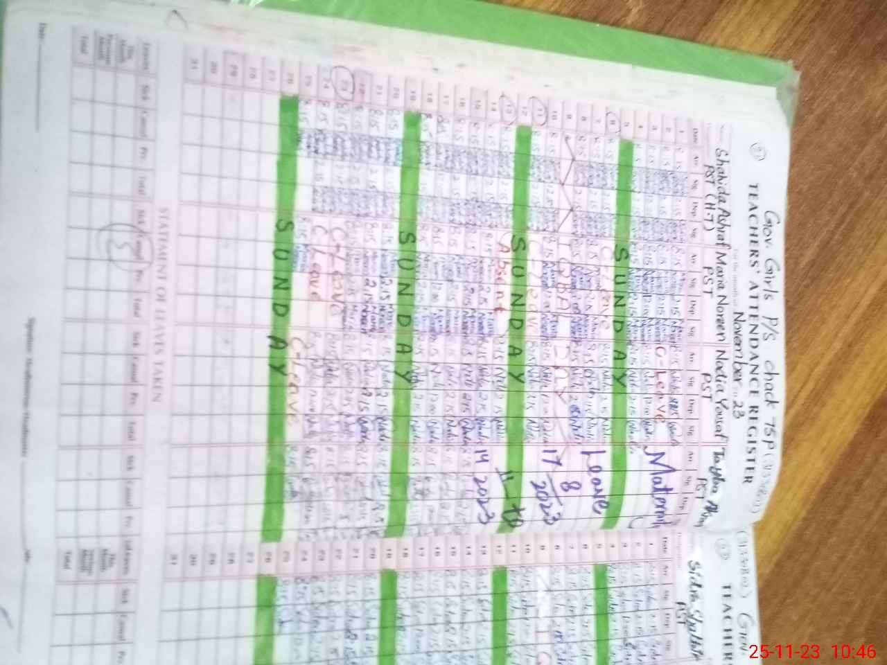 | Leave | Duty | Absent | Maternity | Medical | Ex- Pak |