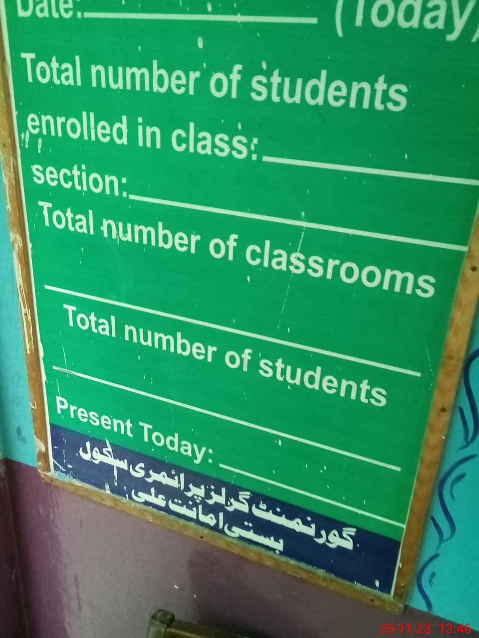 | Total no. of Classrooms: 4 No. of Classrooms Used for Teaching: 3 No. of Classrooms Storing Old Furniture, FTBs, etc: 0Comments if Any: School functional in a private rental building upper portion only Need to be established in an independent building |