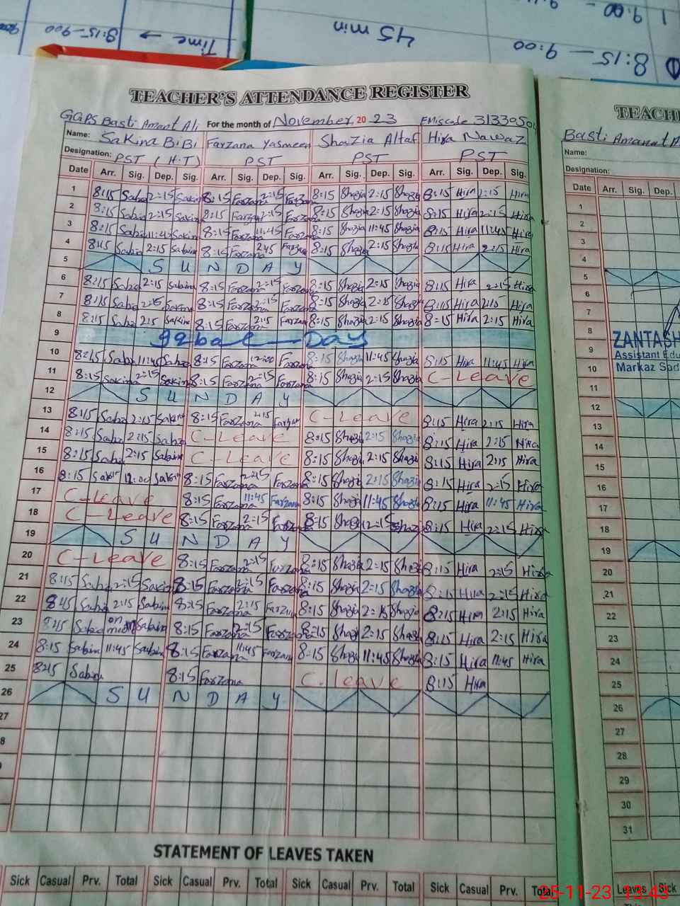 | Name: Sa**** Bi**** Designation: (School Headmaster's/Headmistress's) PST Phone/Cell Number: 03**** |