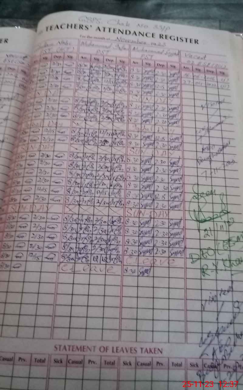| CNIC | Full Name | Designation | R/C | Absence During Last Calender Month |