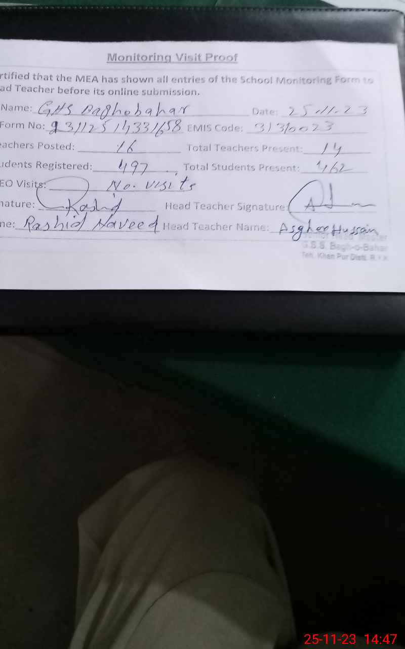 | EMIS Code: 31310023 | Name of School: GHS BAGH-O-BAHAR | |||
