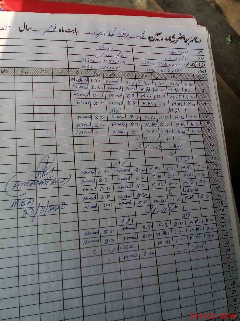 | Name: Mu**** Al**** Designation: (School Headmaster's/Headmistress's) PST Phone/Cell Number: 03**** |