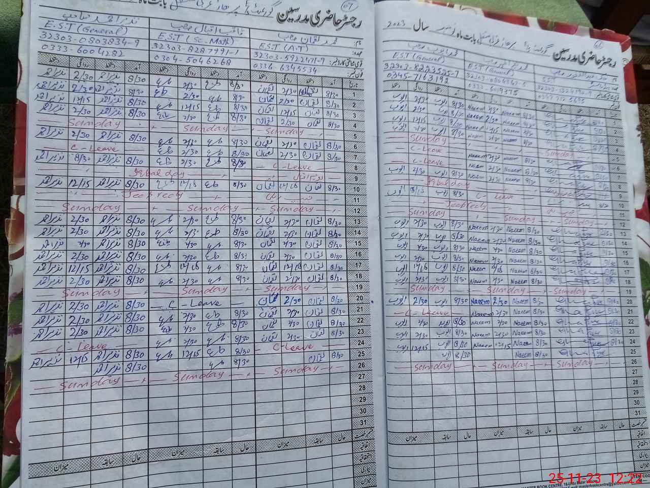 | CNIC | Full Name | Designation | R/C | Absence During Last Calender Month |