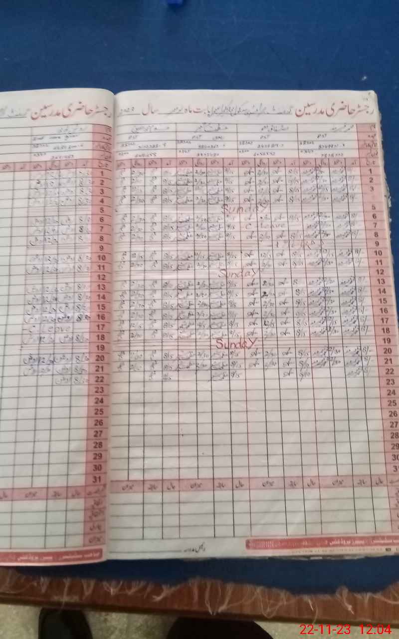 | CNIC | Full Name | Designation | R/C | Absence During Last Calender Month |