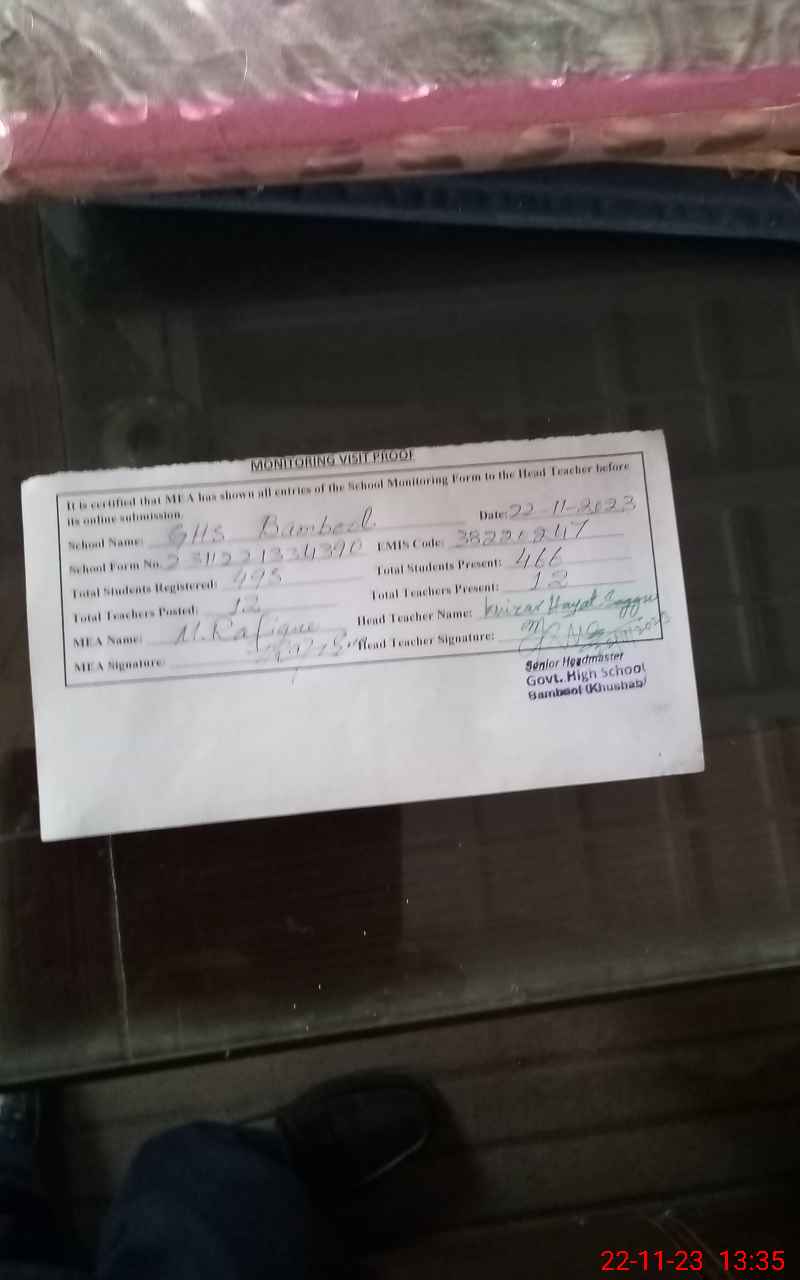 | EMIS Code: 38220247 | Name of School: GHS BAMBOOL | |||