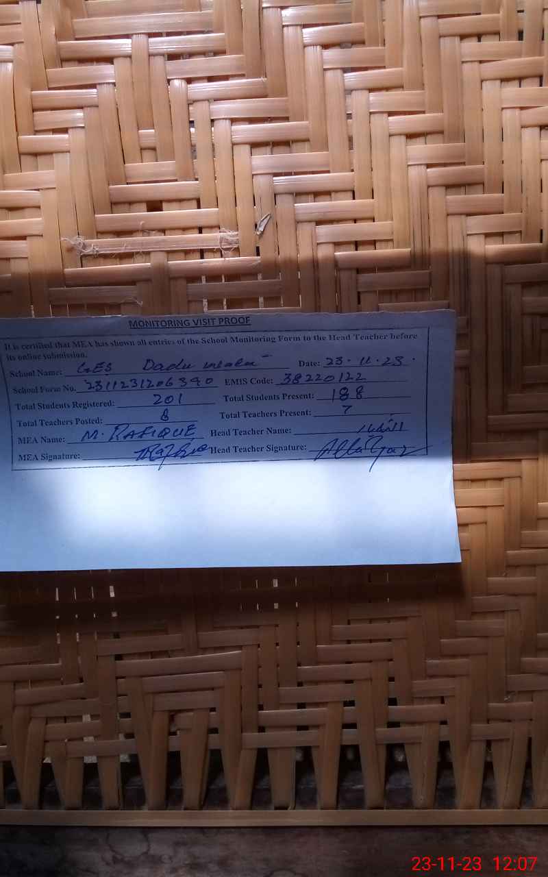 | EMIS Code: 38220122 | Name of School: GES DADOO WALA | |||