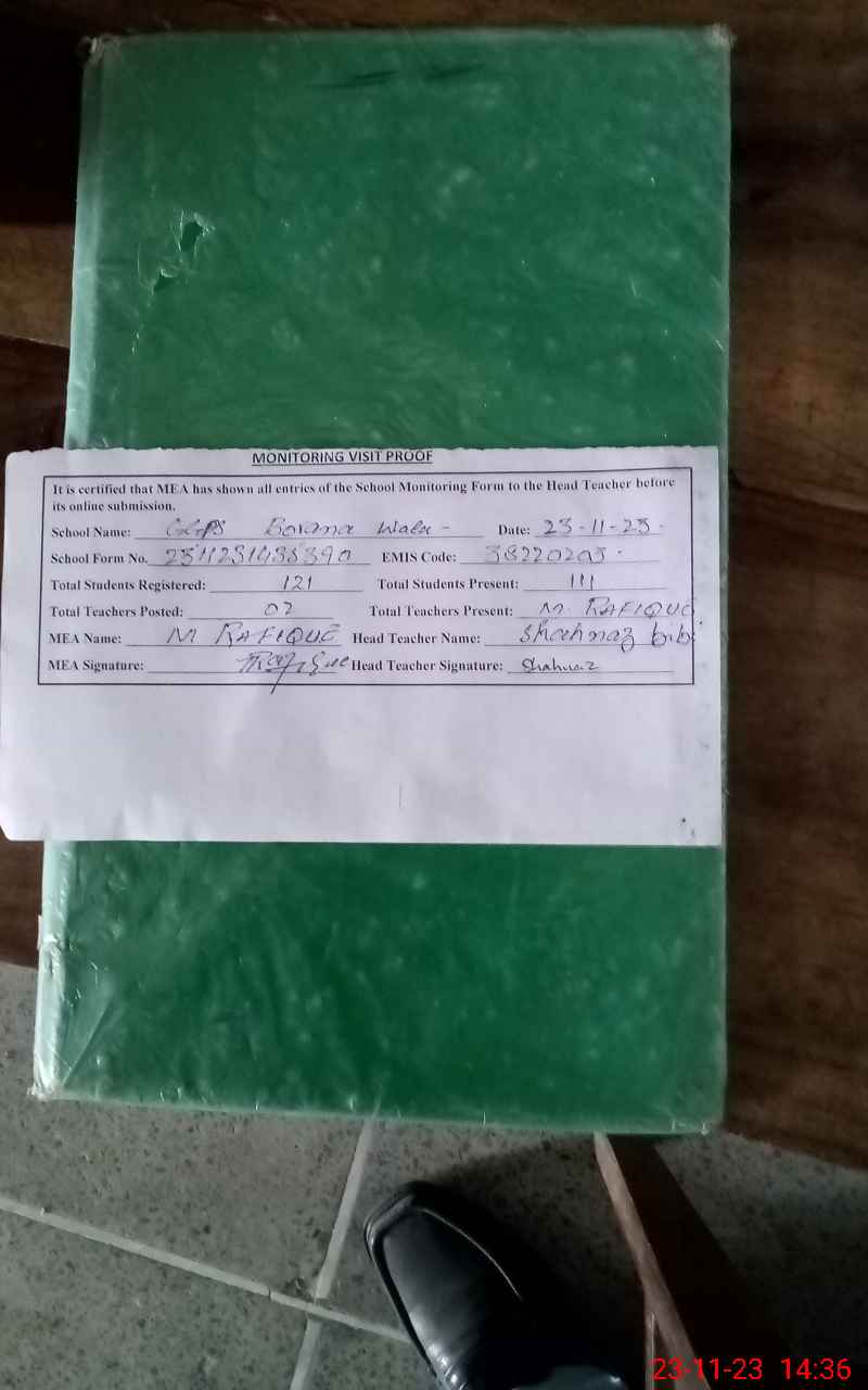 | EMIS Code: 38220203 | Name of School: GGPS BURANA WALA | |||