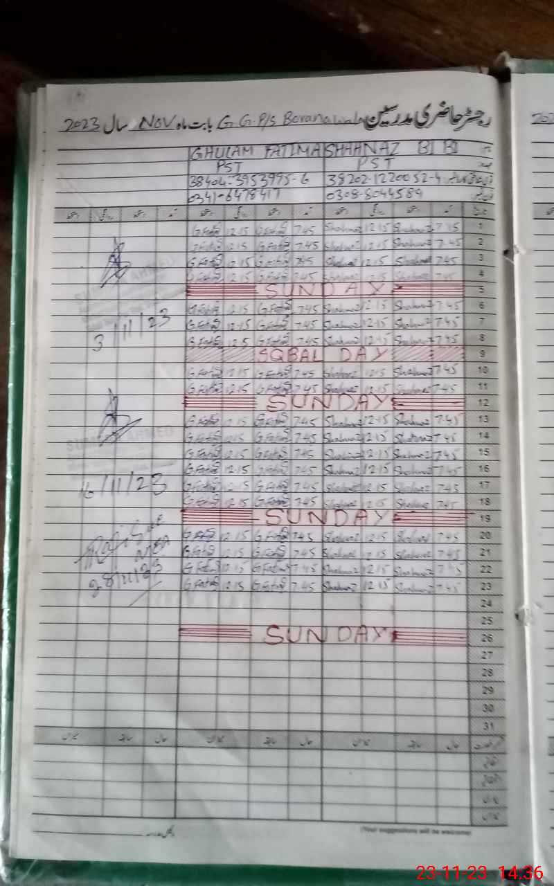 | Name: SH**** BI**** Designation: (School Headmaster's/Headmistress's) PST Phone/Cell Number: 03**** |