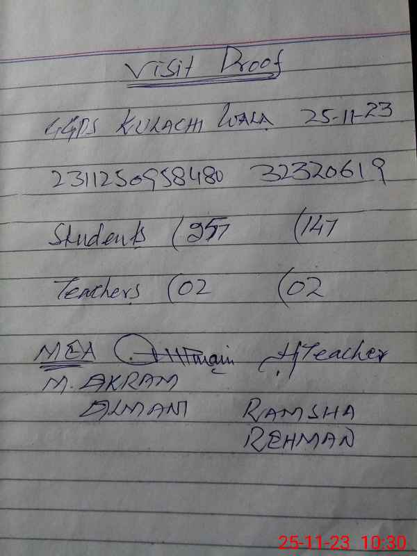 | EMIS Code: 32320619 | Name of School: GGPS KOLACHI WALA | |||