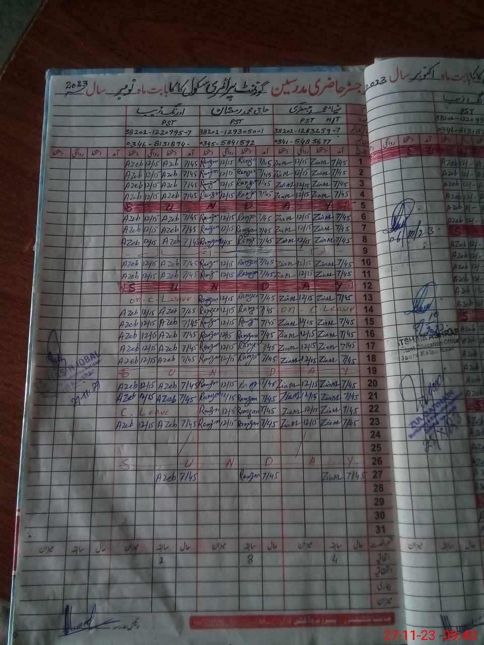 | Name: ZI**** MU**** Designation: (School Headmaster's/Headmistress's) PST Phone/Cell Number: 03**** |