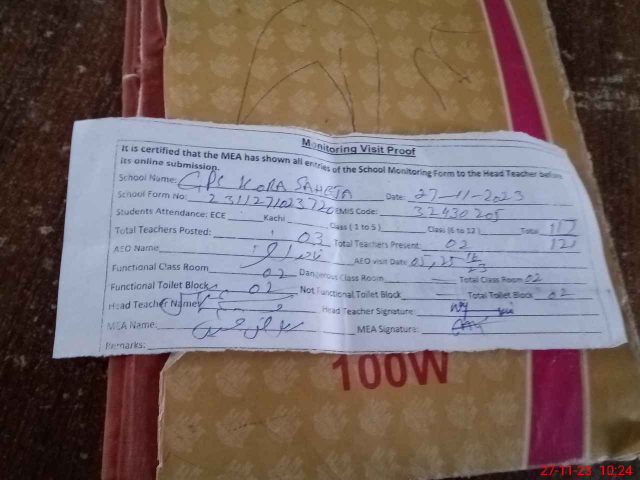 | EMIS Code: 32430205 | Name of School: GPS KORA SAHEJA | |||