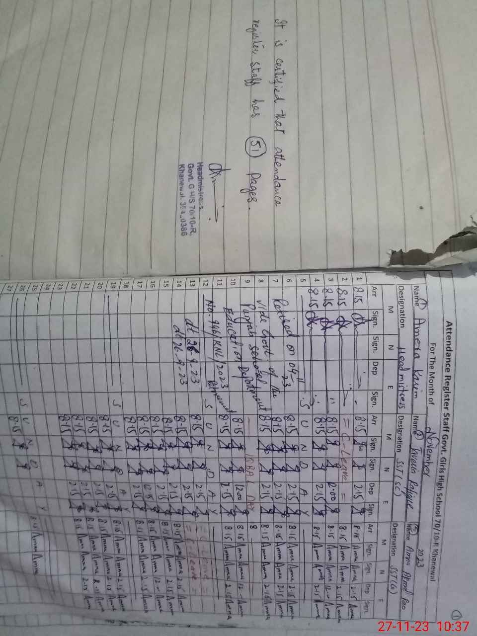 | Name: Fa**** Ja**** Designation: (School Headmaster's/Headmistress's) Incharge SSE (Sci) Phone/Cell Number: 03**** |