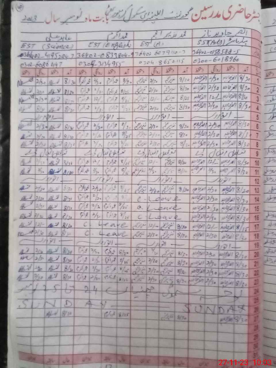 | Name: AN**** JA**** NA**** Designation: (School Headmaster's/Headmistress's) S.S.T.(GEN) Phone/Cell Number: 03**** |
