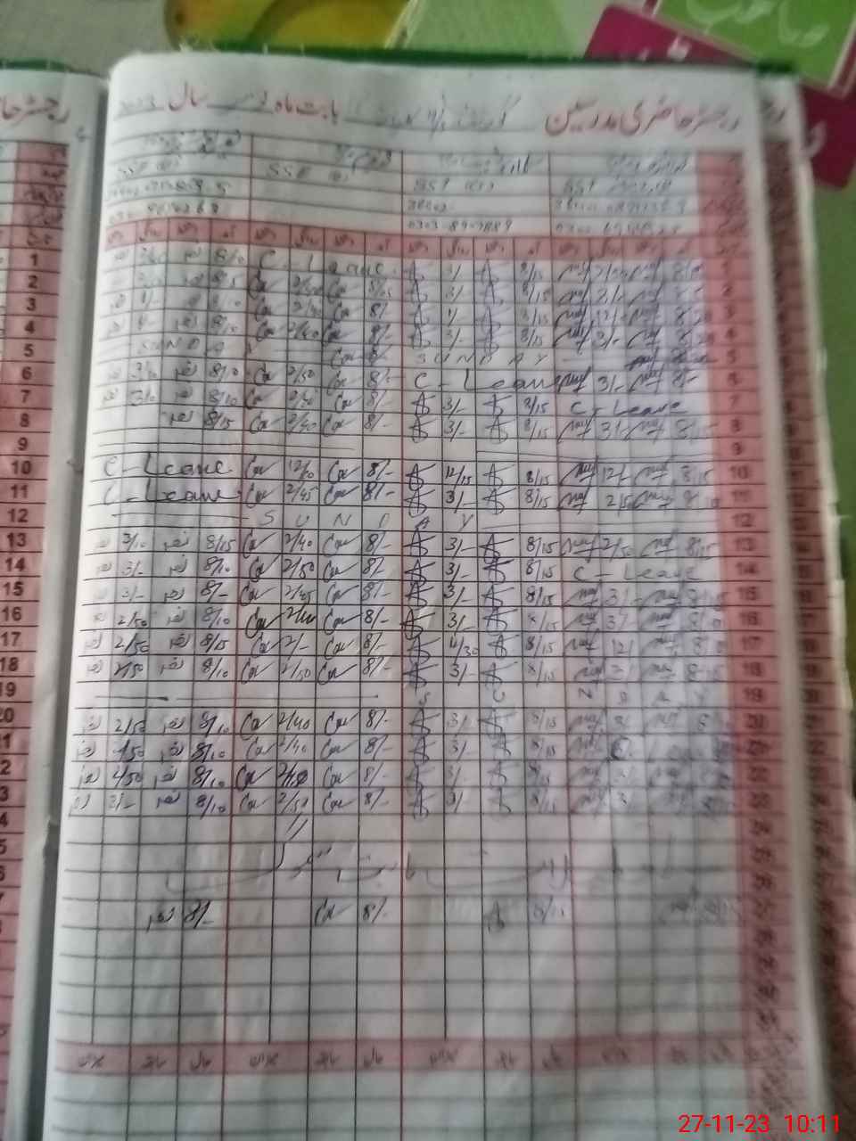 | CNIC | Full Name | Designation | R/C | Absence During Last Calender Month |