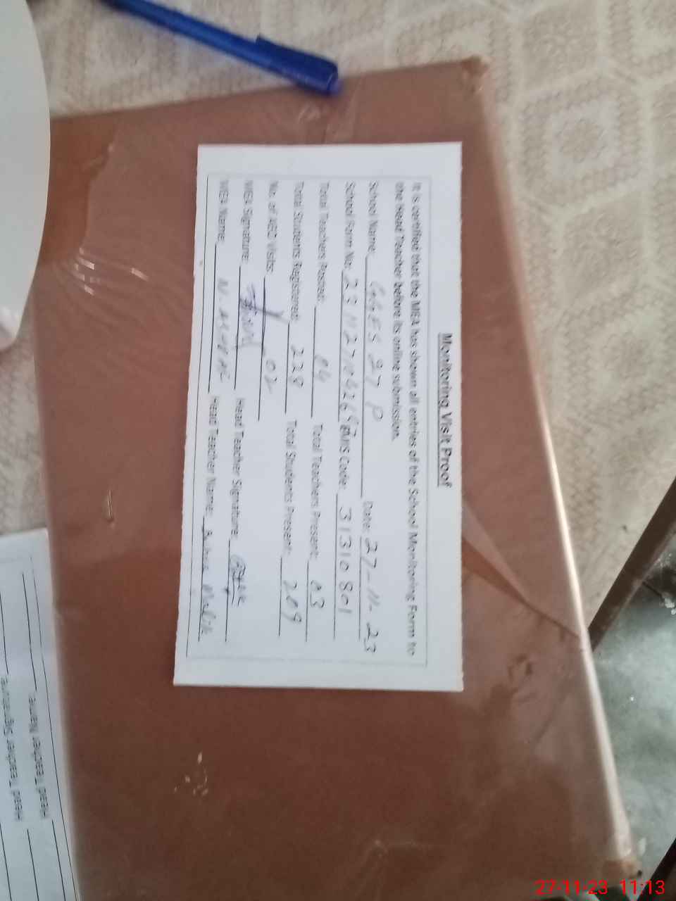 | Attendance Register | Head Teacher | MEA with School | Visit Proof |