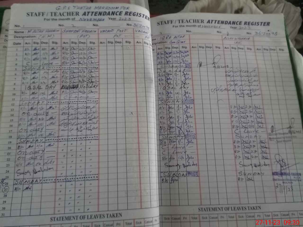 | Name: Mu**** Al**** Hu**** Designation: (School Headmaster's/Headmistress's) PST Phone/Cell Number: 03**** |