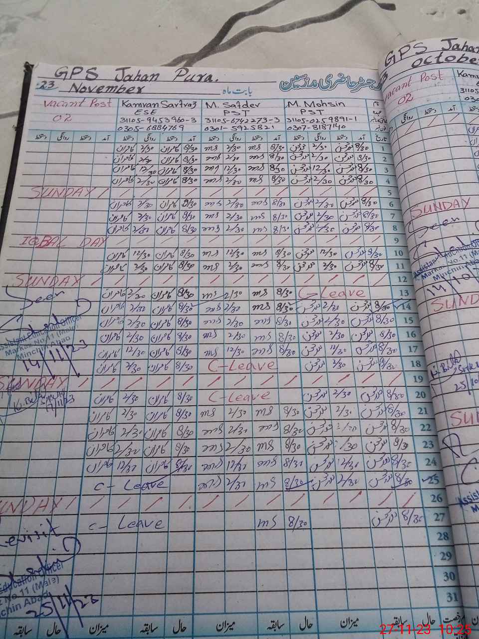| Name: MU**** MO**** Designation: (School Headmaster's/Headmistress's) PST Phone/Cell Number: 03**** |