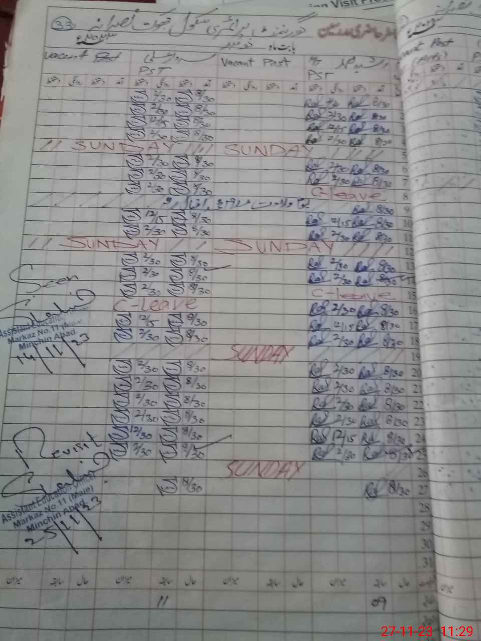 | CNIC | Full Name | Designation | R/C | Absence During Last Calender Month |