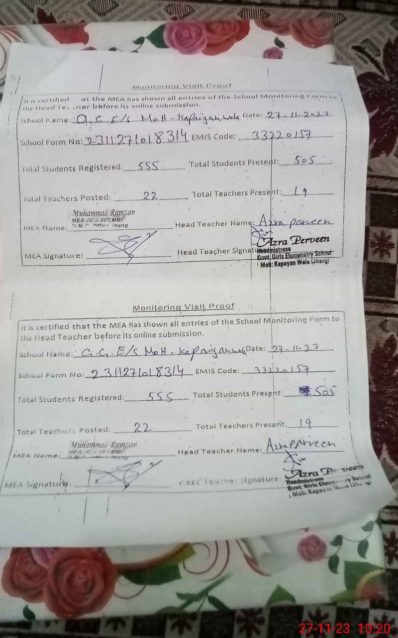 | EMIS Code: 33220157 | Name of School: GGES MOHALLAH KAPAYIYAN WALA | |||