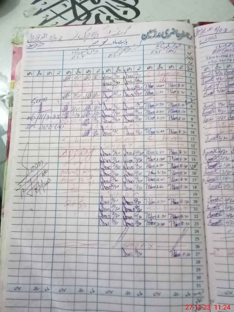 | 33**** | Fa**** Ha**** Sh**** | 1 | 1 | 0 | 0 | 0 | 0 | 0 | 0 | 0 | 0 | 0 | Absent (Un-Authorized) |
